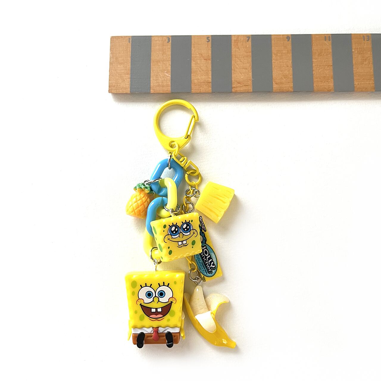 人気のスポンジボブが大小2つ付いたポップなキーホルダーです。