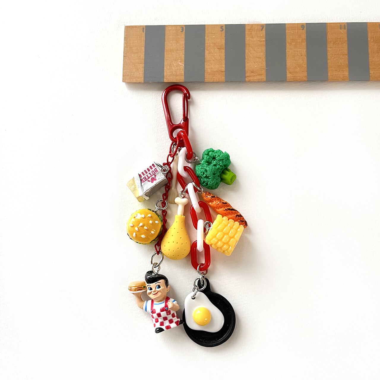 ビックボーイのキャラクターとお店の食べ物をイメージした小ぶりなキーホルダーです。
